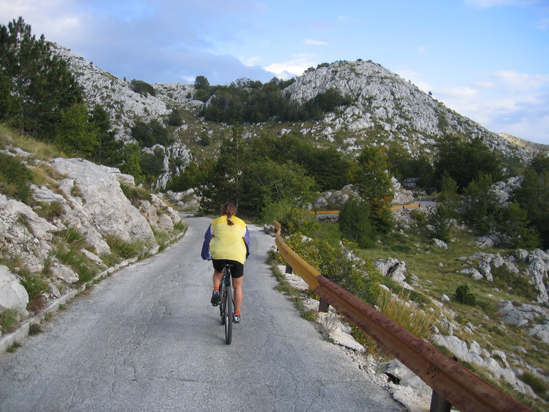 Dole bolo príjemne teplo, horúčava nám nehrozila. Po vyše hodine stúpania sme prišli ku vstupu do prírodnej rezervácie Biokovo. A ako je už v Chorvátsku zvykom, vyberá sa vstupné. Zarazilo nás akurát to, že cyklisti neboli voči ľuďom, ktorí sa rozhodli zdolať túto cestu v aute nijako zvýhodnení. Skôr naopak, keď sedelo v aute viac osôb vyšiel ich vstup menej, ako cyklistu, ktorý zaplatil 20 kuna (asi 100 sk). Predebatovali sme to so strážcom, povedali sme mu, že to ľudí moc nemotivuje, aby namiesto auta zvolili bicykel. Len sa zasmial a pokrčil plecami. Bolo nám jasné, že tu nejde o ekológiu, ale o niečo iné...