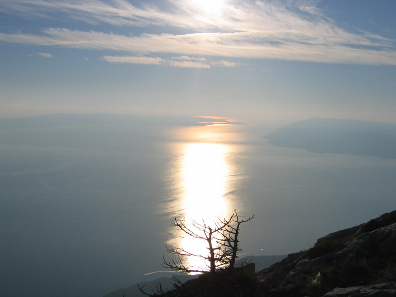 Do Chorvátska sme prišli bez dobej kondičky priamo z práce z Talianska a keďže sme si to chceli aj vychutnať, naplánovali sme si zdolanie Sv. Jure ako celodenný výlet. Koncom septembra boli už dni kratšie a tak nám to nakoniec aj celý deň zabralo. Vyrazili sme ráno z kempu v Podgore, prešli po móle 1. meter n.m. a začali stúpať peknými serpentínami v borovicovom lese.
